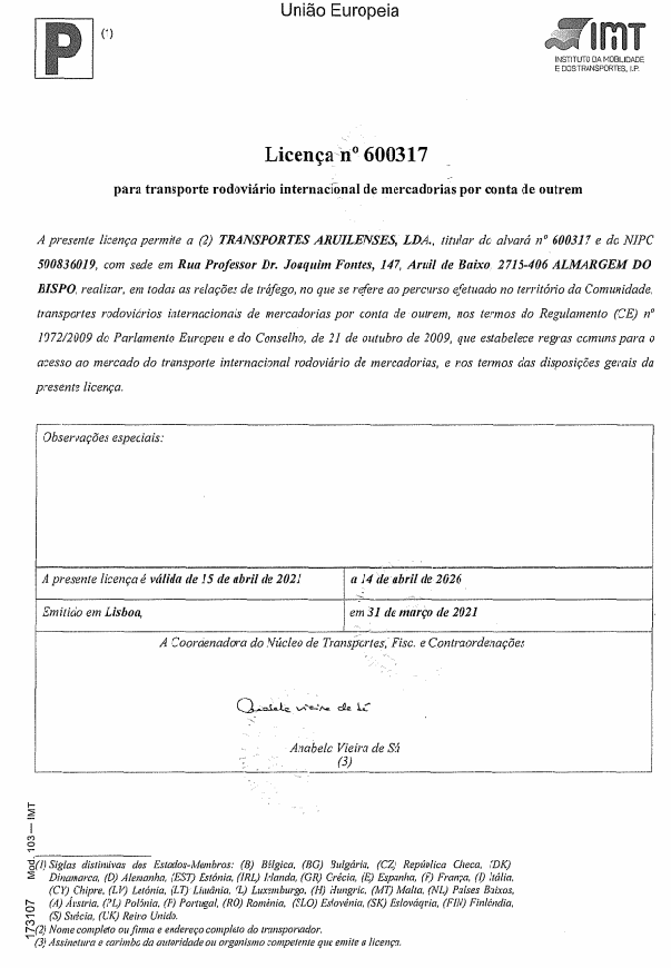 Os Transportes Aruilenses, Lda foram fundados a 21 de janeiro de 1969, estão autorizados pelo IMT a exercer a atividade de transporte rodoviário de mercadorias por conta de outrém de âmbito nacional e internacional ao abrigo da Licença n.º 600317.